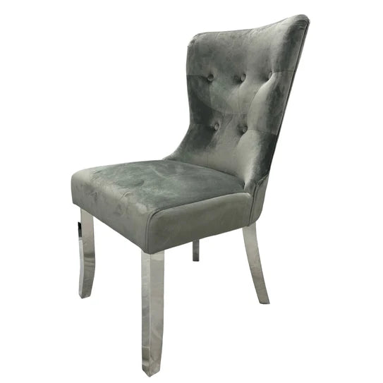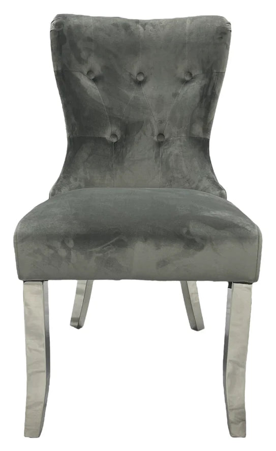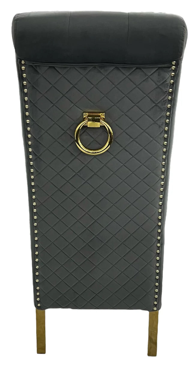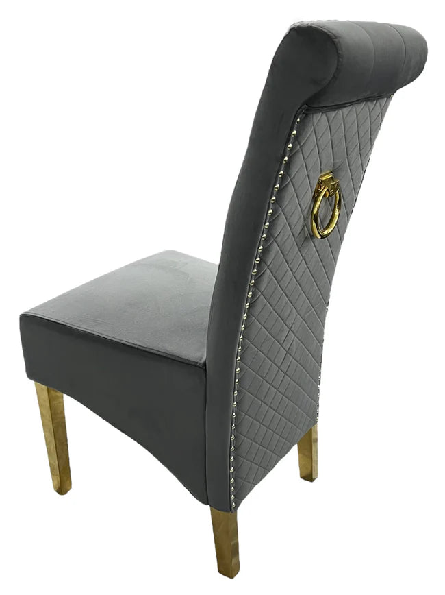Lucy Grey Dining Chair with Ring Knocker/Gold Legs -