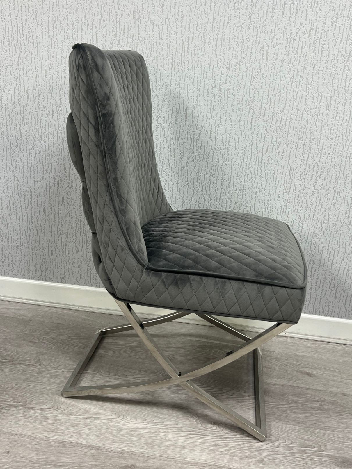 The Sandhurst X leg design elevates our velvet collection with its deep-buttoned back detail and distinctive crossed base.