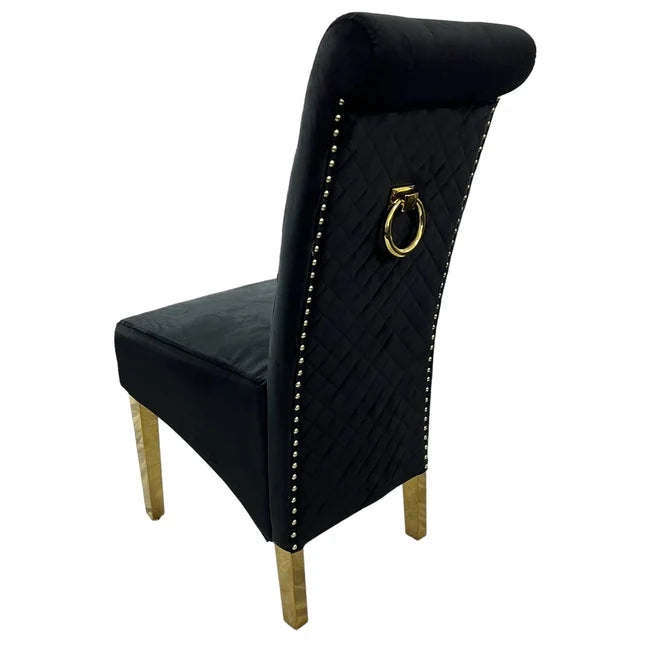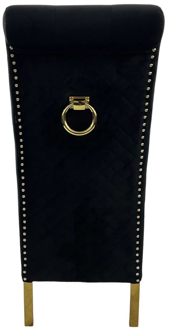 Lucy Black Dining Chair with Ring Knocker/Gold Legs -
