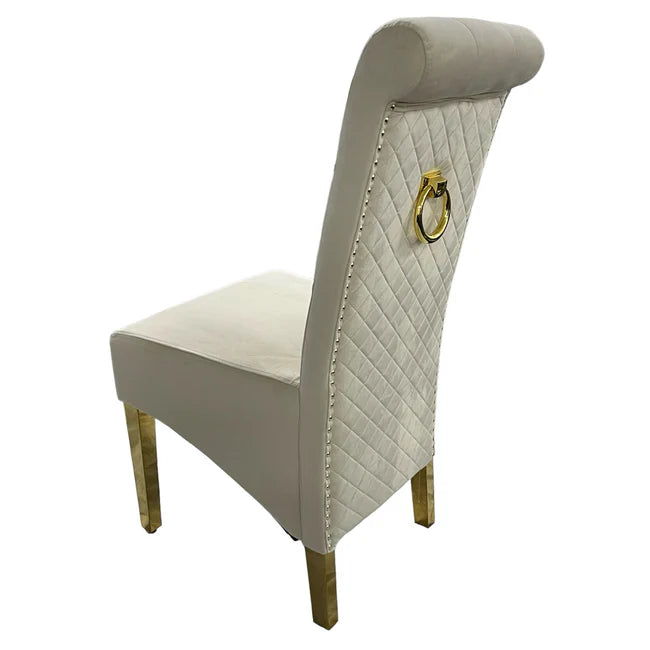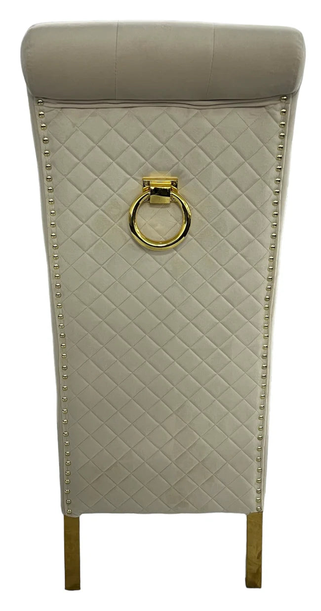 Lucy Cream Dining Chair with Ring Knocker/Gold Legs -